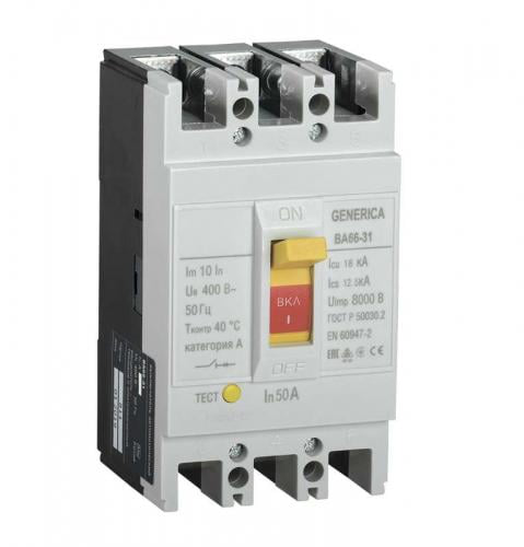 Автоматические выключатели ВА66 GENERICA предназначены для проведения тока в нормальном режиме и отключения тока при коротких замыканиях, перегрузке, а также для оперативных включений и отключений участков электрических цепей.Рассчитаны на эксплуатацию в электроустановках с номинальным рабочим напряжением до 400В и на номинальные токи от 16 до 250А.