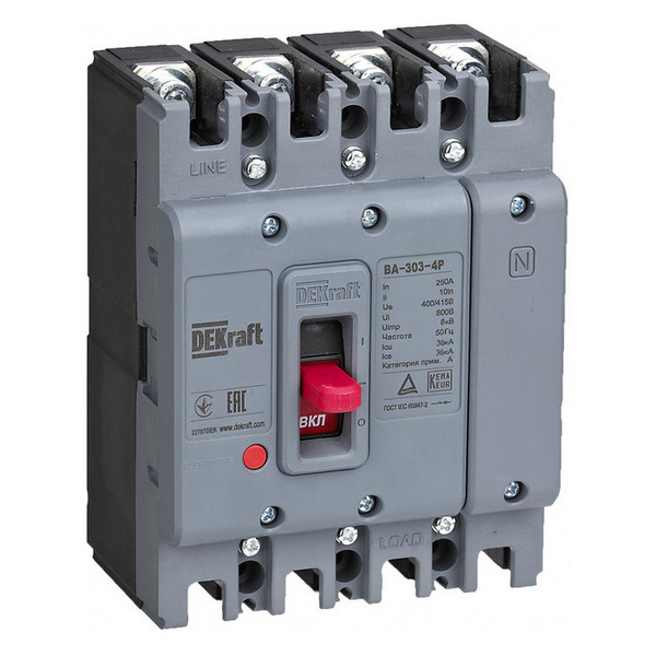 Силовой автомат DEKraft 4P 125А 36кА ВА-303 (лит.корпус ВА-300) - это надежное и высококачественное электрическое устройство, предназначенное для защиты электрических цепей от перегрузок и коротких замыканий.Этот силовой автомат имеет четыре полюса, номинальный ток 125А и высокую коммутационную способность 36кА. Он относится к серии DEKraft, что гарантирует надежную работу и долгий срок службы.
