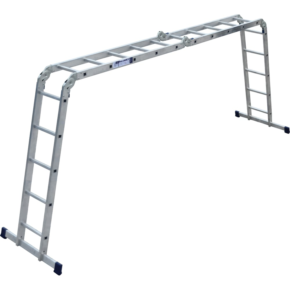 Лестница алюминиевая шарнирная четырехсекционная– представляет собой лестницу-трансформер, состоящую из четырех секций, последовательно соединенных между собой стальными шарнирами. Шарнины имеют три угла фиксации, которые обеспечивают лестнице три положения: -приставная, -стремянка, -приставная под крышу.Тетивы, ступени и стабилизатор лестницы изготовлены из высокопрочного алюминиевого сплава (ГОСТ 22233), обеспечивающего изделию прочность и легкость, что важно для транспортировки и установки. Ступени выполнены с рифлением,что способствует безопасному подъёму и спуску.Идеальный помощник как на производстве, так в офисе, в быту, на даче или гараже.Лестницу можно использовать вне помещения. Конструкция стойкая к воздействию неблагоприятных погодных условий благодаря коррозионностойким свойствам алюминия. Этот фактор является одним из главных преимуществ модели.Особенности лестницы: широкий профиль, облегченные шарниры, два стабилизатора.Данная линейка лестниц подходит для строительства и ремонта на профессиональном уровне, а также для выполнения бытовых работ.!!!Доукомплектовать лестницу можно: шарнирамиHSL-20, стабилизаторомSTB, комплектом заглушек для стабилизатораZGS!!!*ИСПОЛЬЗОВАТЬ ЛЕСТНИЦУ В ПОЛОЖЕНИИ «ПОМОСТ» -ЗАПРЕЩЕНО!Завод – изготовитель оставляет за собой право в одностороннем порядке вносить изменения в конструкцию, в целях улучшения технических характеристик.на линейные размеры отклонение может составлять +-5 мм, на вес изделия +-5%