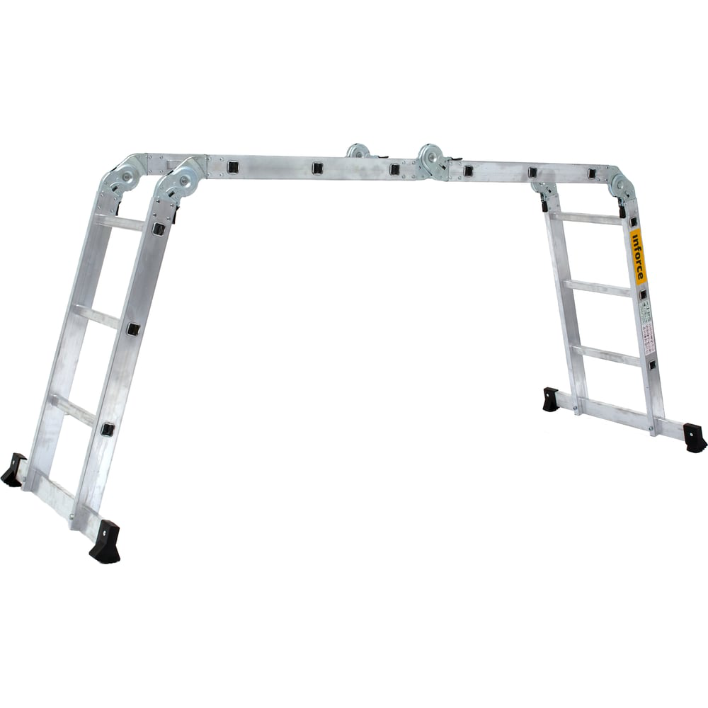 Лестница-трансформер Inforce 4x3 ЛП-Т-4-3 применяется при различных работах. Выполнена из алюминиевого профиля, устойчивого к внешним воздействиям. Имеет 4 секции по 3 ступени. Модель может быть установлена в любом положении (например, стремянка, помост, приставная односекционная лестница или приставная согнутая лестница). Широкие траверсы с антискользящими накладками из пластика обеспечивают устойчивость конструкции.