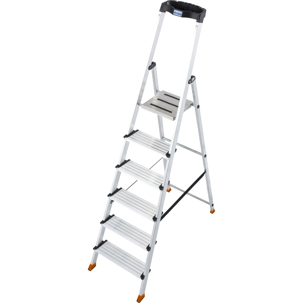Свободностоящая стремянка, 6 ступеней Krause MONTO SEPURO 127242 подходит для ремонтных и прочих работ на высоте. Изготовлена из алюминиевого профиля, что гарантирует долговечность. Высокая эргономичная дуга безопасности с держателям для ведра, двумя держателями кабеля и полкой для инструментов. Прочные шарниры с обхватом боковины (4CS). Комфортные нескользящие ступени шириной 125 мм. Новые большие наконечники на боковины с мягкой накладкой - с усиленным профилем, не скользят и не повреждают пол благодаря большей площади.Продукт сертифицирован в строгом соответствии с ГОСТ Р 58752-2019 и DIN EN-131.