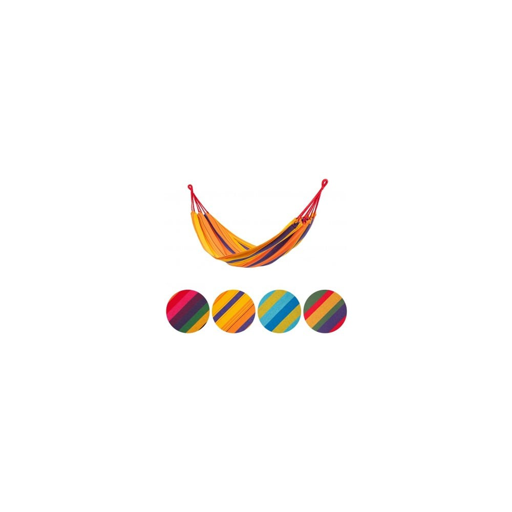 Простой гамак для отдыха за городом. Хлопок мягкий и приятный к телу, при этом достаточно прочный, чтобы выдержать нагрузку до 100 килограмм. Хранить и транспортировать данный аксессуар не трудно, он комплектуется мешочком. Яркая окраска гамака может стать приятным дополнением вашего дачного участка или кемпинга. Внимание! Гамак поставляется в нескольких цветах. Возможности выбора нет.