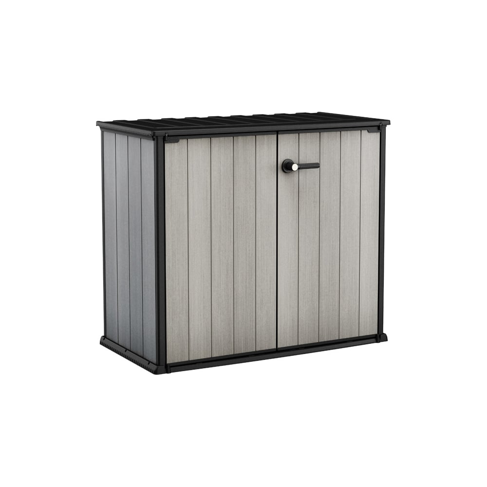 Уличный шкаф Keter Patio Store 230455 имеет простой и элегантный дизайн, цвет и текстуру поверхности, напоминающую натуральную древесину. Ящик будет незаменим всюду, где необходимо организованное хранение садовых принадлежностей и прочих бытовых предметов. Прочная конструкция защищает хранимые предметы от влаги и ветра. Изготовлен из высококачественного полипропилена, поэтому прослужит десятки лет. Его можно покрасить в любой цвет. Стены сарая можно окрашивать водоэмульсионной акриловой краской для наружного применения. Рекомендуем: однотонные краски, светлые оттенки, глянцевый лак. Проконсультируйтесь со специалистом при выборе краски. Сборку (монтаж) пластиковой продукции рекомендовано производить при температуре воздуха выше 5 градусов тепла. Особенности модели: Двойные стенки DUOTECH™ с ребрами жесткости Текстура стенок DUOTECH™ в виде неотесанной древесины Широкие и прочные двойные двери Прочная крыша Нержавеющие петли с раскрытием дверей в 105° Кронштейны для двух регулируемых полок (полки не включены) Сверхпрочные панели пола выдерживают большой вес Предусмотрена возможность использования навесного замка