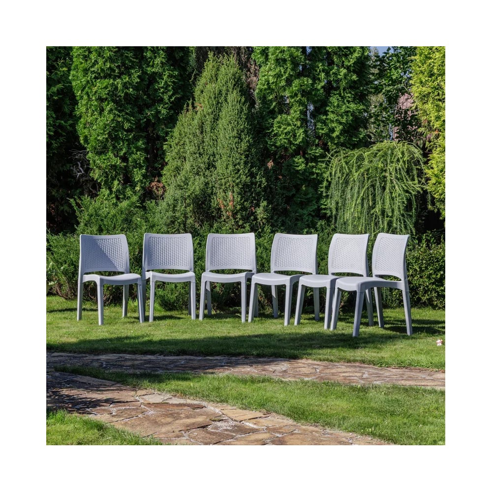 Комплектация и габариты:Стул (6 шт.) - 49х52х84 смШирина посадочного места - 40 смГлубина посадочного места - 43 смВысота от пола до сидячего места - 49 смМатериалы:Материал комплекта - окрашенный в массе полипропилен с повышенной прочностьюЦвет комплекта - светло-серыйДополнительная информация:Максимальная нагрузка на посадочное место - 120 кгПоставляется в разобранном видеТемпературный режим - от -50C до +50C