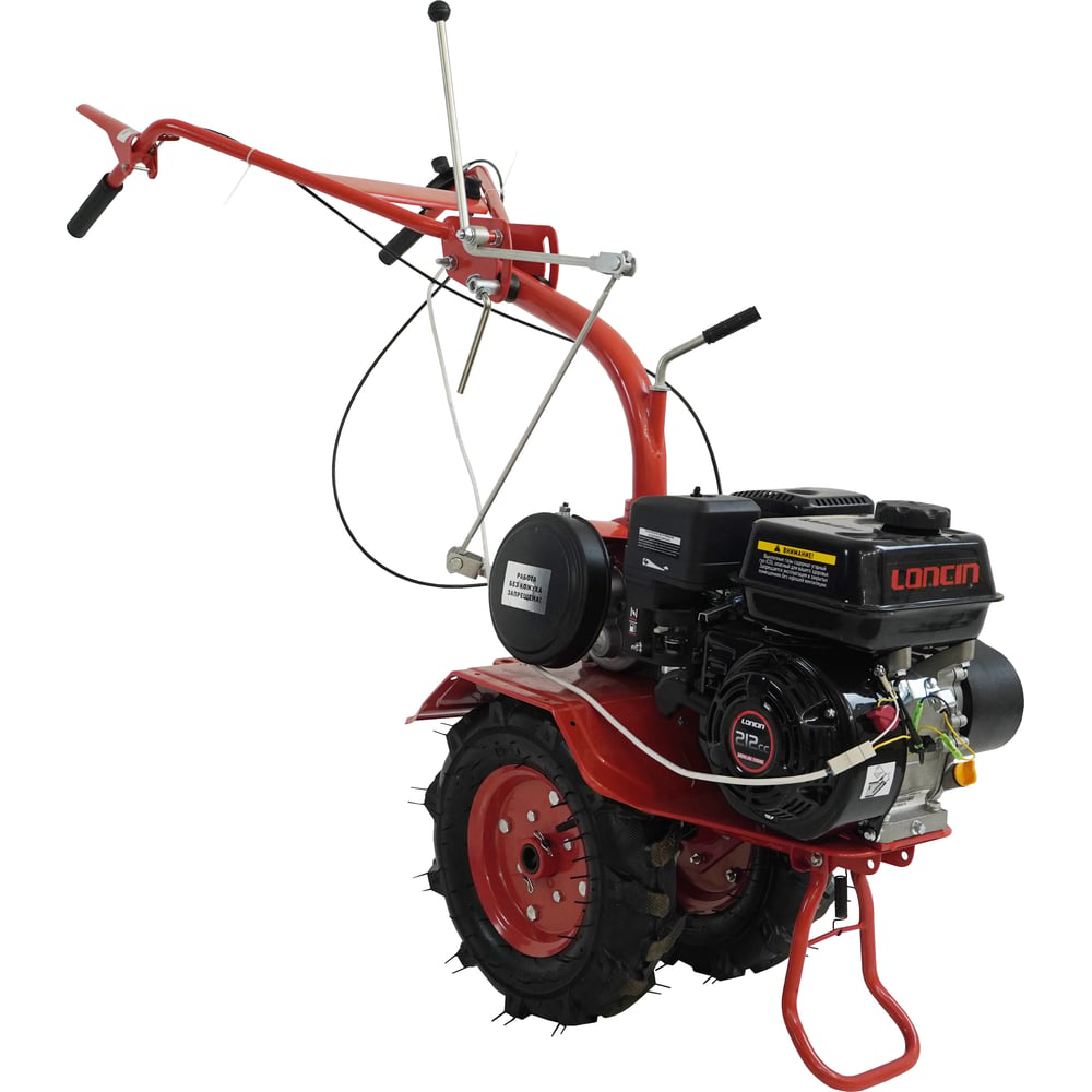 Мотоблок бензиновый Агат LC7-П представляет собой полноценный многофункциональный агрегат для обработки почвы в огороде и на приусадебных участках. Надежный и мощный инструмент для обработки земли, который обеспечит высокую производительность и удобство использования. В качестве силового агрегата на мотоблоке используется четырехтактный бензиновый двигатель Loncin 170F-2 с мощностью 7 л.с. Надежный двигатель с чугунной гильзой обеспечивает бесперебойную работу при интенсивном использовании, а установленный датчик уровня масла предотвращает повреждение двигателя при понижении уровня масла в картере ниже необходимого. Сельскохозяйственная машина Агат LC7-П имеет 2 передние передачи и 1 заднюю. Наличие реверса облегчает использование и делает мотоблок более маневренным. Мотоблок оснащен простым и надежным ременным сцеплением с двумя ремнями. В отличие от аналогов, редуктор мотоблока полностью шестеренчатый без использования цепей. Шестерни редуктора, изготовленные из стали 18ХГТ с термообработкой, работают в масляной ванне, в алюминиевом корпусе, что делает трансмиссию мотоблока долговечной, максимально надежной, не боящейся больших нагрузок и тяжелых типов почв. Рулевая колонка регулируется по высоте и имеет возможность смены положения (вперед, назад). Рукоятка сцепления имеет фиксатор, что избавляет от необходимости подолгу держать ручку нажатой. Компактные размеры и небольшой вес мотоблока, облегчает его транспортировку и хранение.