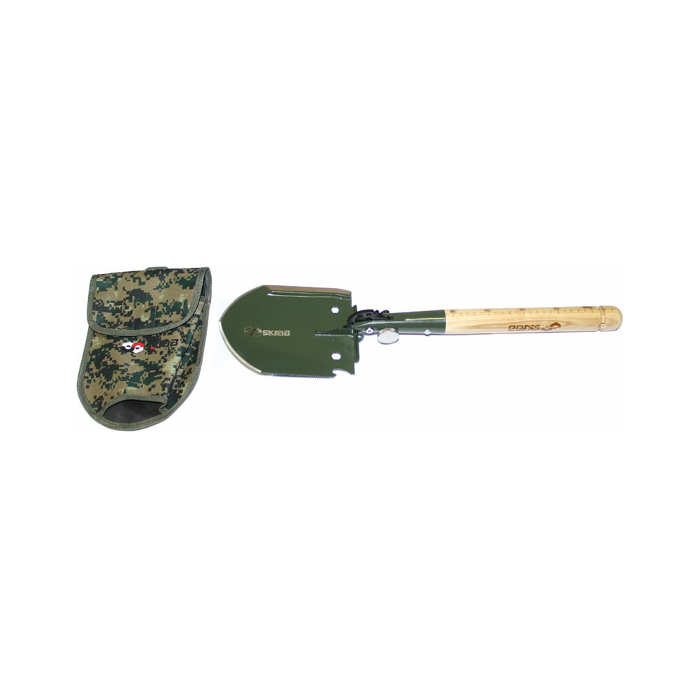 Саперная лопата SKRAB МУЛЬТИ 12 функций Дерево SS 28440 имеет 12 функций: лопата, мотыга, пила, топор, молоток, нож, гаечный ключ, открывалка, кусачки, плоскогубцы, гвоздодер, линейка. Эта саперная лопата станет незаменимой в походе, на рыбалке и в машине.