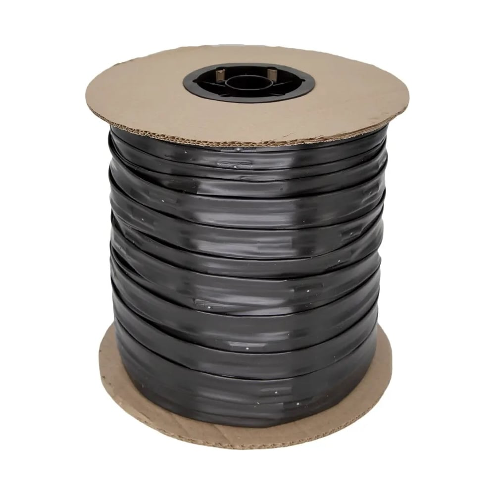 Лента капельного полива из пластика представляет собой один из ключевых элементов капельной системы орошения, которая помогает добиться увеличения качества и объема урожая, а также уменьшить себестоимость продукции. Конструктивные особенности изделия позволяют с высокой эффективностью применять ее для организации системы полива на больших площадях. Предварительно отфильтрованная вода и удобрения, растворенные в ней, поступают в канал из центральной магистрали. Лента характеризуется отличной устойчивостью к засорению, что упрощает ее эксплуатацию. Если ее укладка будет производиться механизированным способом, то следует проверить все части, которые контактируют с капельной лентой — это позволит избежать ее повреждения. Изделие окрашено в черный цвет. Капельная лента эмиттерного типа с параметрами: диаметр 16 мм, шагом эмиттеров 30 см, с выливом — 1,6 л/час, длина 2000 м (бухта) – практичное изделие для садоводов и огородников. Она может стать хорошей альтернативной традиционному поливу растений на открытых грядках и в теплицах.